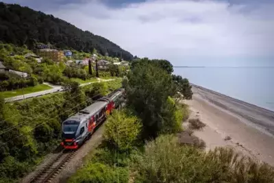 На маршруте электропоезда "Диоскурия", курсирующего между Сочи и Сухумом, сегодня произошло чрезвычайное происшествие: подвижной состав из-за неисправности стрелки сошел с рельсов на станции "Цандрыпш".