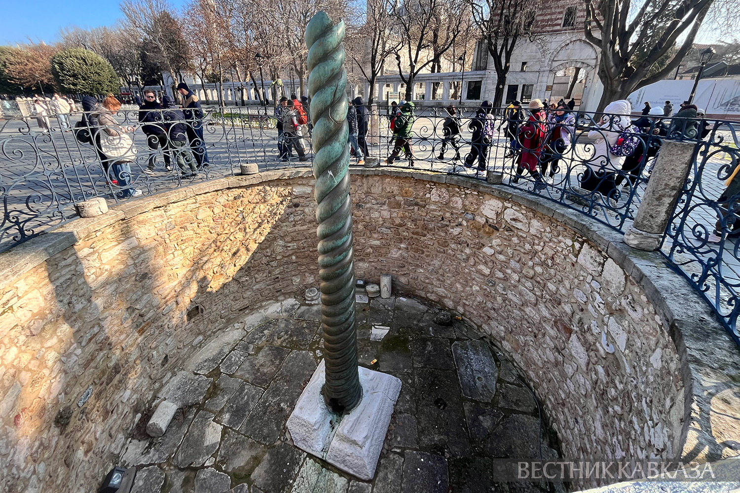 Змеиная колонна стоит в городе более 2500 лет. Одна из трех бронзовых змей, обвивающих центральную колонну, сейчас выставлена в Археологическом музее Стамбула. Эта древнегреческая реликвия расположена на Константинопольском ипподроме, ныне известном как площадь Султанахмет.