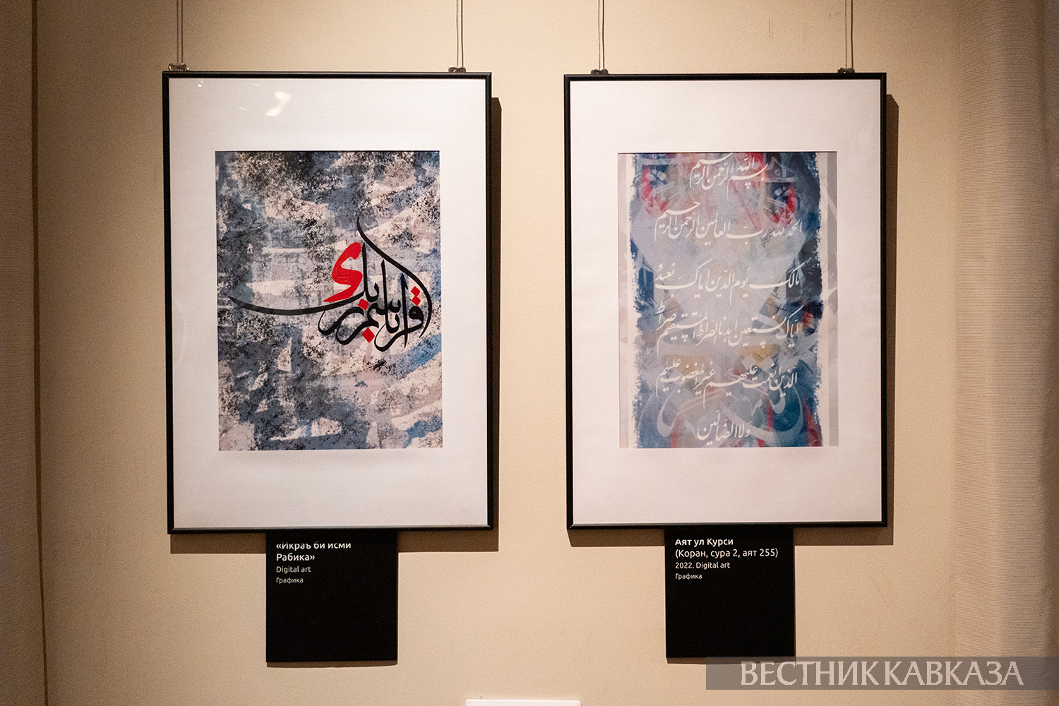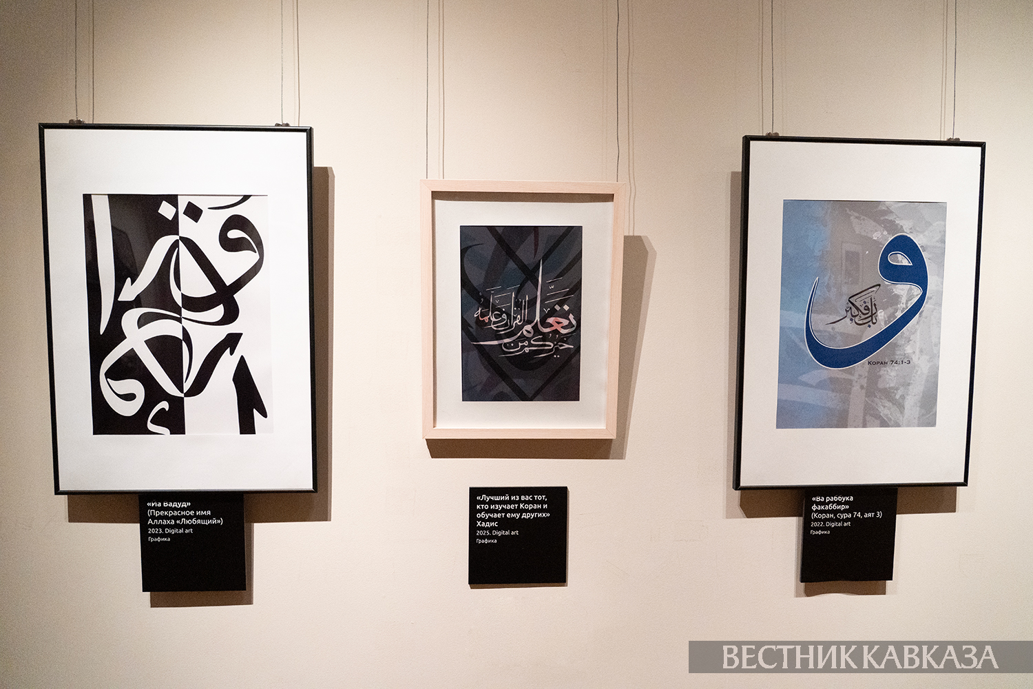 Здесь представлено 40 работ. Их фактически никто на таких выставках не видел – это работы, которые вышли из-под пера, из-под кисти буквально неделю назад. Здесь в основном арабская каллиграфия, хадисы из Корана. Это цифровые работы, хотя я работаю в разных техниках, в том числе и на гравюре, и маслом на холсте. Но в последнее время пользуюсь именно цифровыми технологиями, демонстрируя, что такую сложную структуру, такую сложную каллиграфию можно показать по-другому