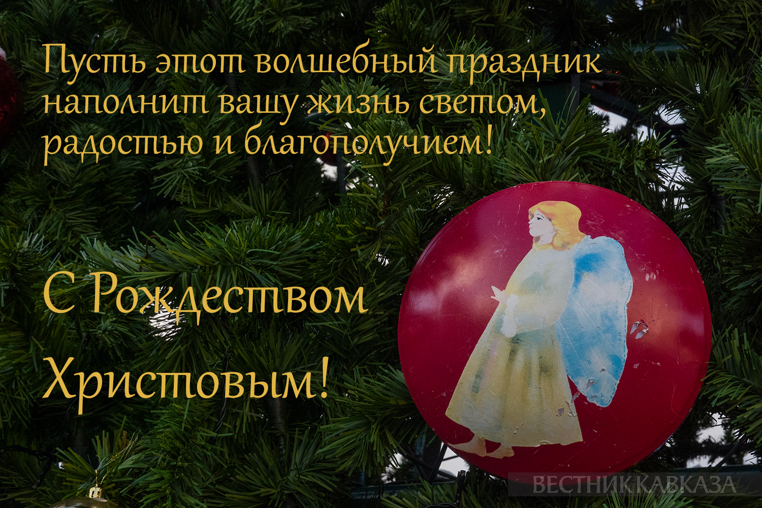 С Рождеством Христовым! Пусть в этот светлый праздник мир и покой царят в вашем доме! Пусть надежда никогда не покидает вас, а отчаяние и не показывается в округе! Пусть ангел-хранитель закрывает вас своими крылами от всех бед! Будьте счастливы!