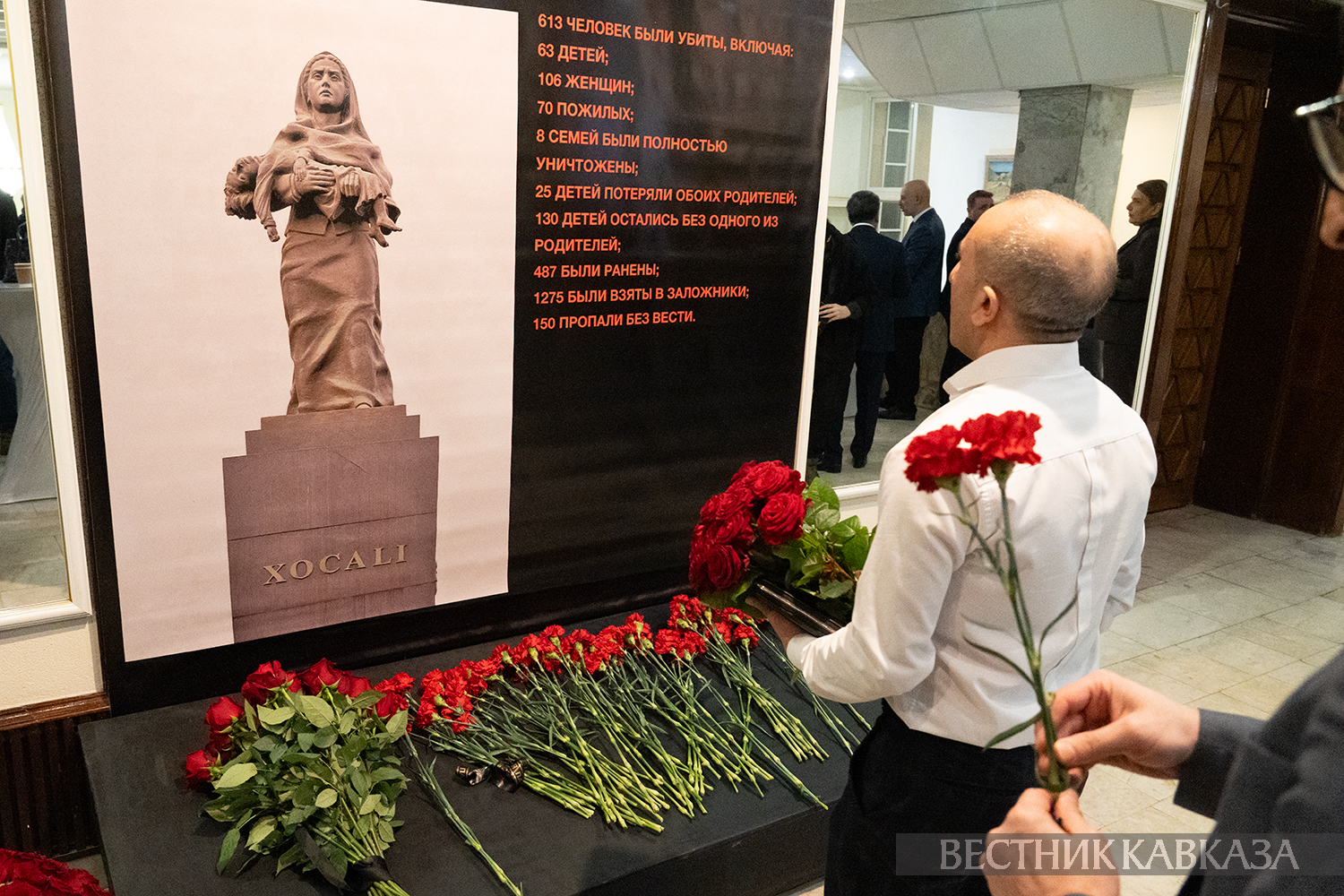 34 года назад в Ходжалы проживало около 7 тысяч человек. В ночь на 26 февраля было зверски уничтожено 613 человек, в том числе 106 женщин, 63 ребенка и 70 стариков. 1275 человек было взято в плен, 150 из них до сих пор считаются без вести пропавшими. 487 человек, в том числе 76 детей, стали пожизненными инвалидами после перенесенных физических и психологических травм.