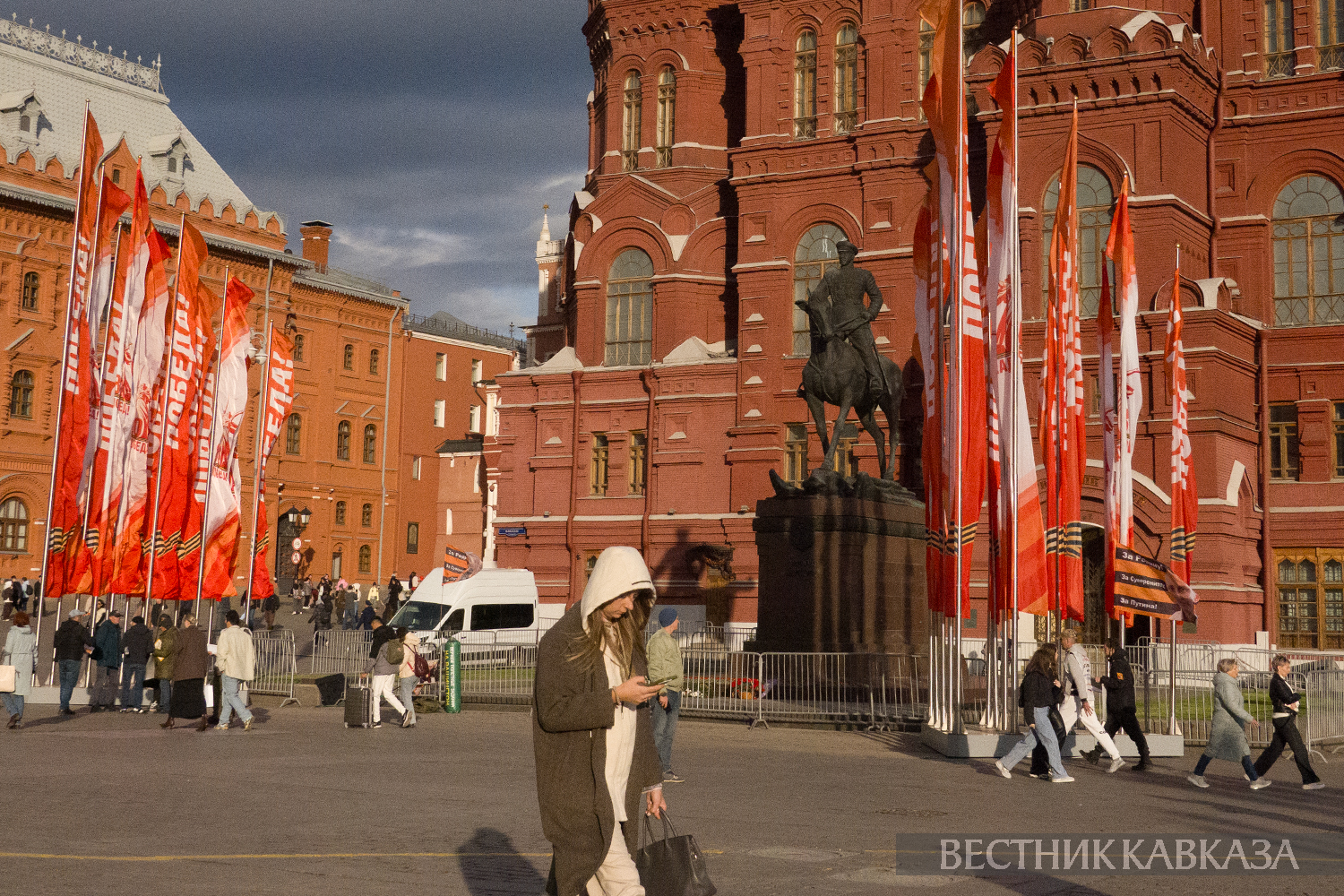 © Фото: Мария Новоселова/ “Вестник Кавказа“. Праздничное оформление ко Дню Победы на Манежной площади
