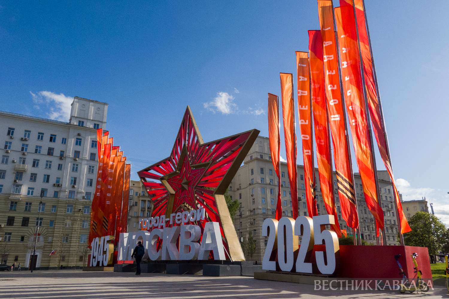 © Фото: Мария Новоселова/ “Вестник Кавказа“. Праздничное оформление ко Дню Победы на площади Дорогомиловской заставы
