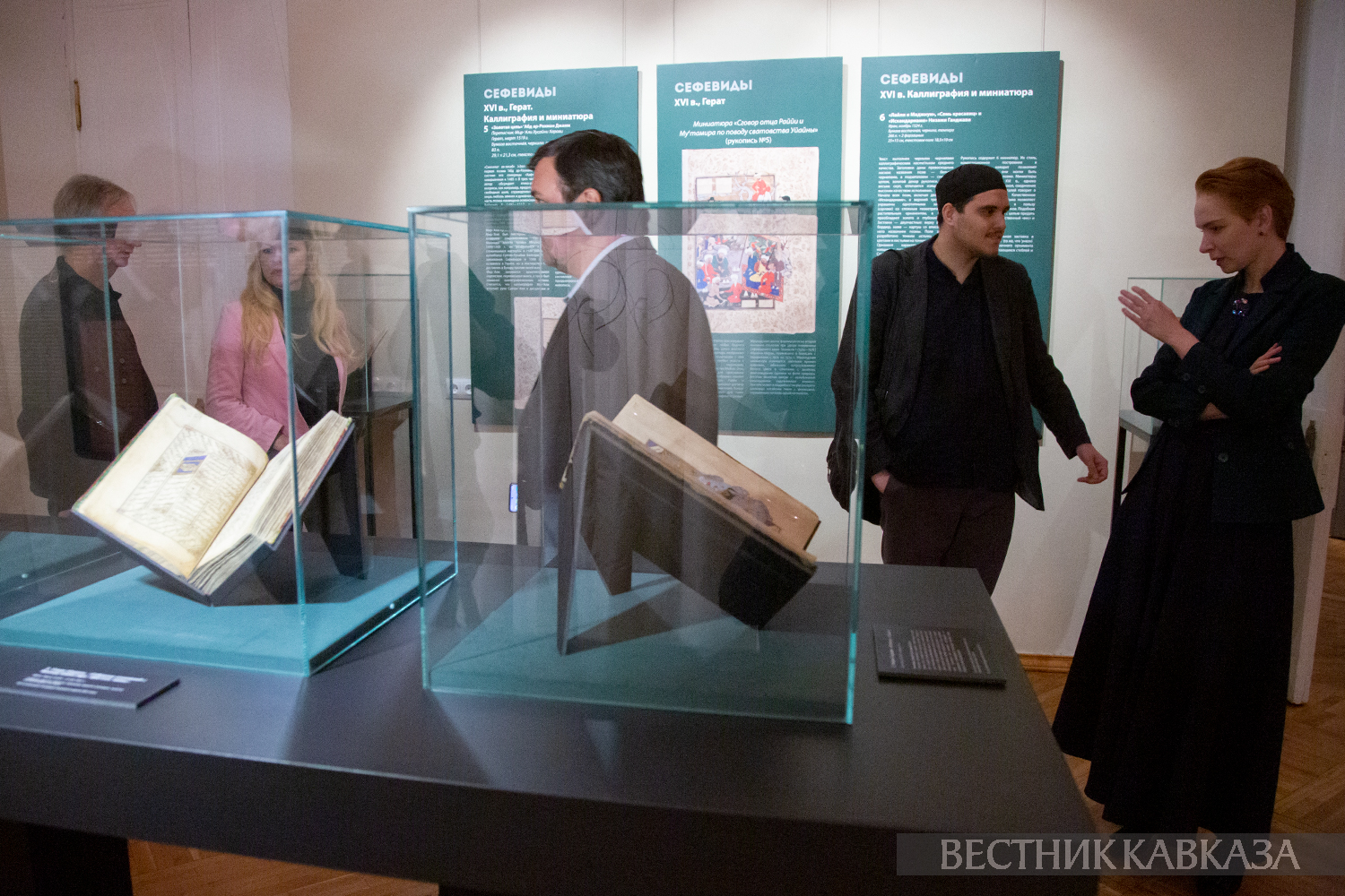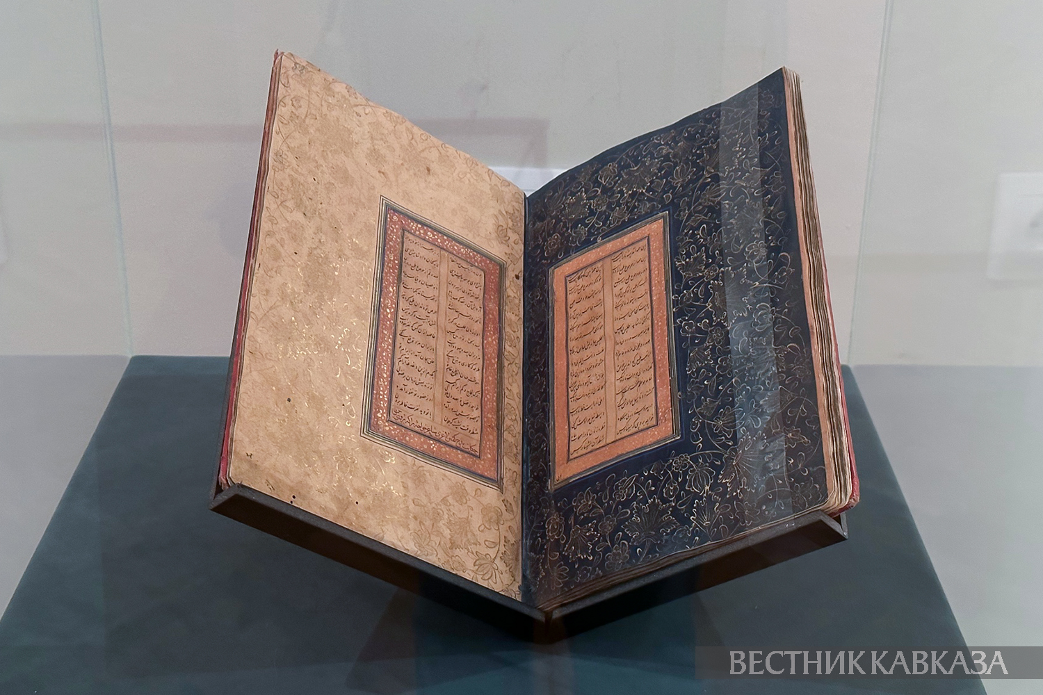В экспозицию, посвященную книжному искусству Персии, вошли шедевры миниатюры и каллиграфии, такие как "Собрание сочинений" Саади 1434 года и "Пятерица" Низами Гянджеви 1491 года.