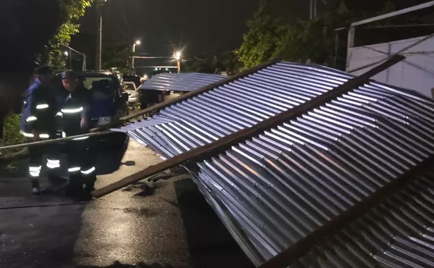 В ведомстве отметили, что ветер снес крышу дома в микрорайоне Норагавит. Часть железной кровли упала на трубу газопровода.