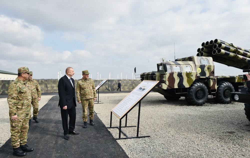 Министр обороны, генерал-полковник Закир Гасанов и начальник Генерального штаба ВС АР, генерал-полковник Наджмеддин Садыков отдали рапорт президенту, Верховному главнокомандующему Ильхаму Алиеву.