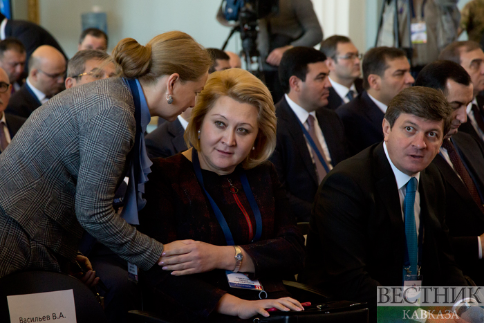 Первый вице-президент Азербайджанской Республики Мехрибан Алиева, поприветствовав участников форума, выразила благодарность всем организаторам и участникам форума, а также председателю Совета Федерации Федерального Собрания Российской Федерации Валентине Матвиенко за ее доброе отношение к Азербайджану, где, по словам первого вице-президента страны, ее знают как искреннего и надежного друга.