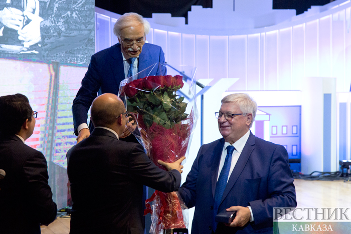 В ходе торжественного мероприятия Полад Бюльбюль оглы вручил ректору МГИМО Анатолию Торкунову медаль "100-летие органов дипломатической службы Азербайджанской Республики".