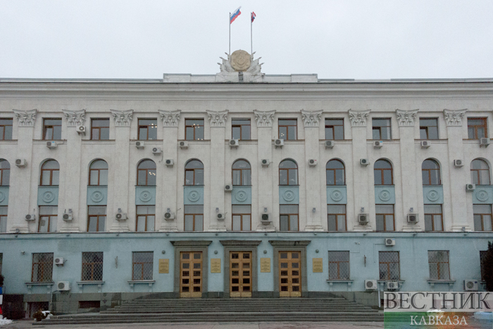Первый вице-спикер госсовета Крыма Константин Бахарев в своем выступлении напомнил, что именно у стен крымского парламента год назад "ковалась победа в "Крымской весне".