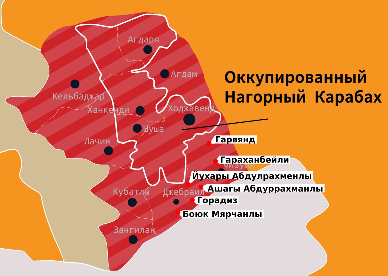 Напомним, что Армения начала атаку на Азербайджан в воскресенье 27 сентября около 5:00 по московскому времени. Для подавления огня и обеспечения безопасности гражданского населения армия Азербайджана начала контрнаступательную операцию, уничтожая боевую технику, военную инфраструктуру и живую силу противника. К настоящему моменту деоккупировано семь сел в Джабраильском и Физулинском районах, а также гора Муровдаг, взяты ключевые высоты вокруг села Талыш.