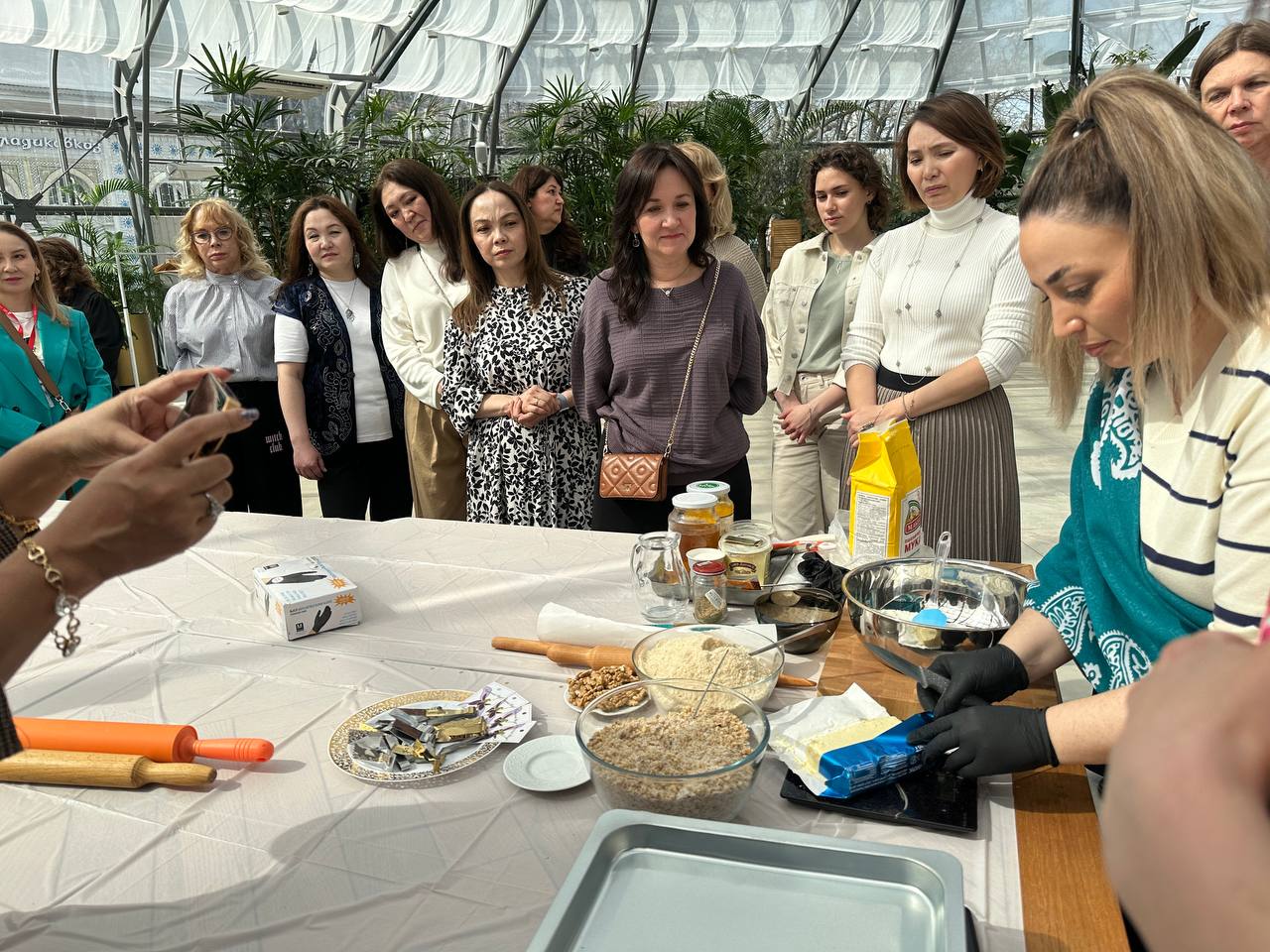 Затем состоялся интересный мастер-класс, на котором участники своими руками приготовили пахлаву и шекербуру – знаменитые и многими любимые сладости азербайджанской кухни, которыми они после смогли насладиться.
