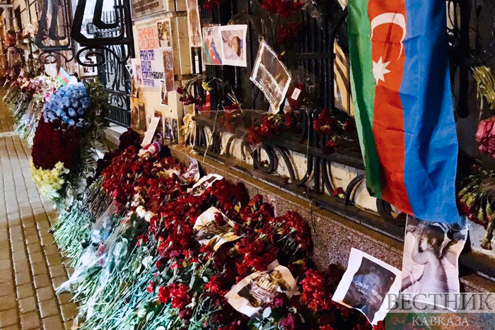 Москвичи несут цветы и детские игрушки к зданию посольства Азербайджана, выражая соболезнования в связи с обстрелом города Барда, в результате которого погибли 16 мужчин и пять женщин, еще 70 человек, в том числе восемь детей и 15 женщин, получили ранения различной степени тяжести.