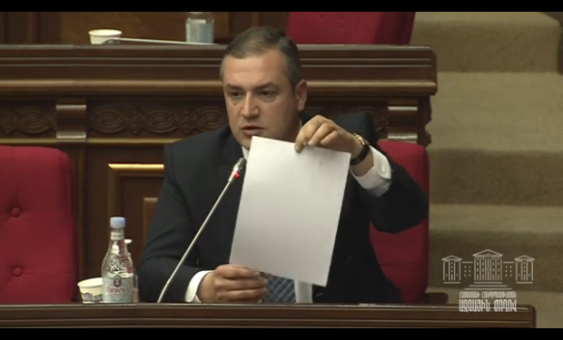 Депутат Нацсобрания Армении Тигран Уриханян сегодня в ходе правительственного часа преподнес премьер-министру Николу Пашиняну лист бумаги, чтобы тот все-таки написал заявление об отставке. Видеотрансляция заседания парламента проходила на его официальном канале в YouTube.