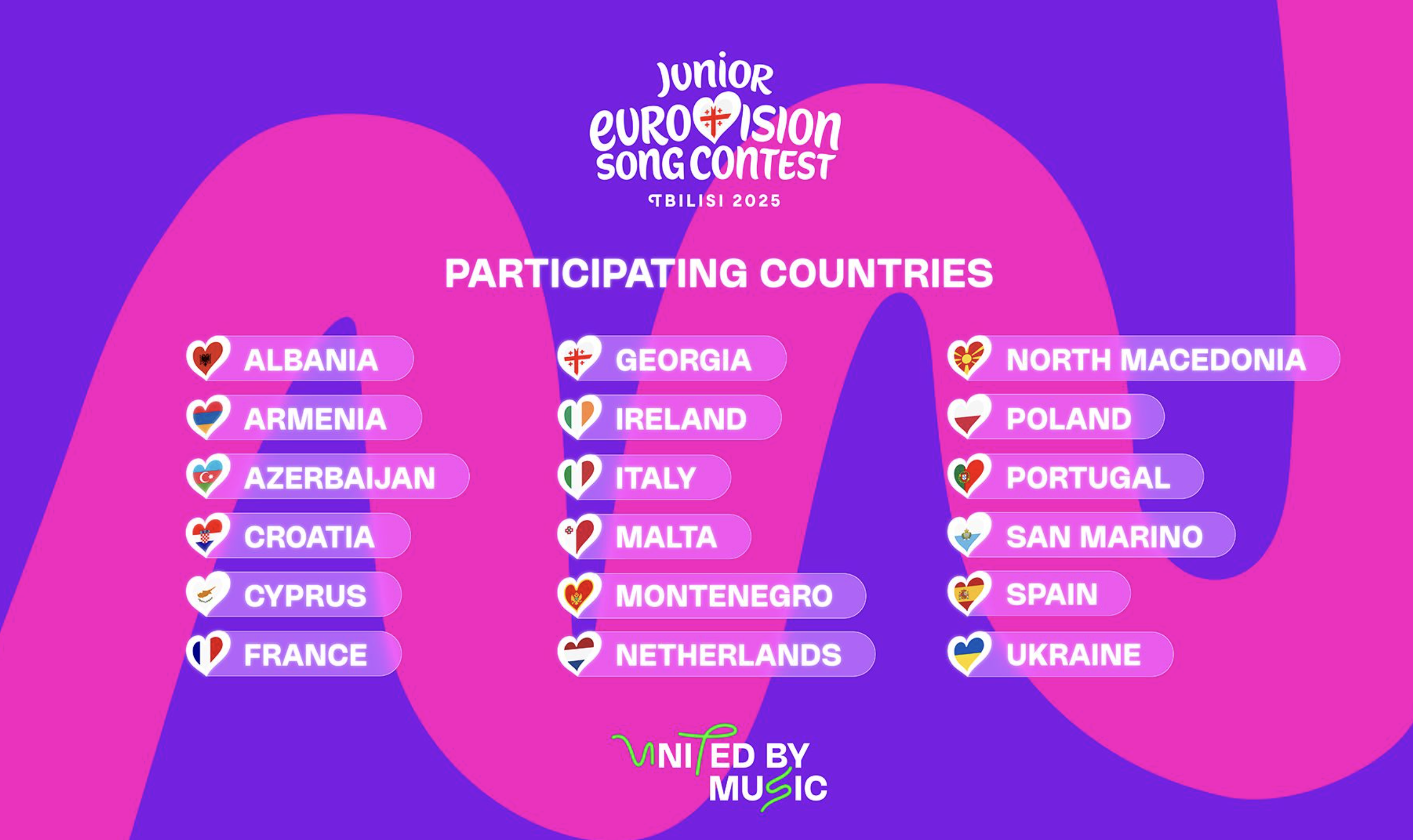 Также в Тбилиси приедут юные исполнители из Албании, Армении, Франции, Италии, Испании, Мальты, Кипра, Польши, Португалии, Нидерландов, Ирландии, Сан-Марино, Северной Македонии и Украины.