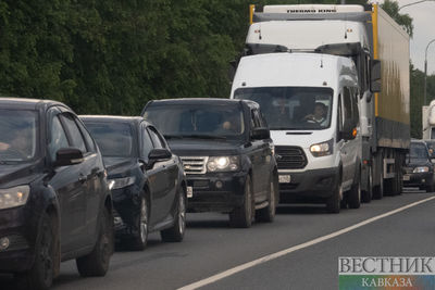 Свыше 400 грузовых автомобилей стоят в пробке на границе России и Грузии. На стоянке перед КПП "Верхний Ларс" находятся порядка двух сотен автомобилей.