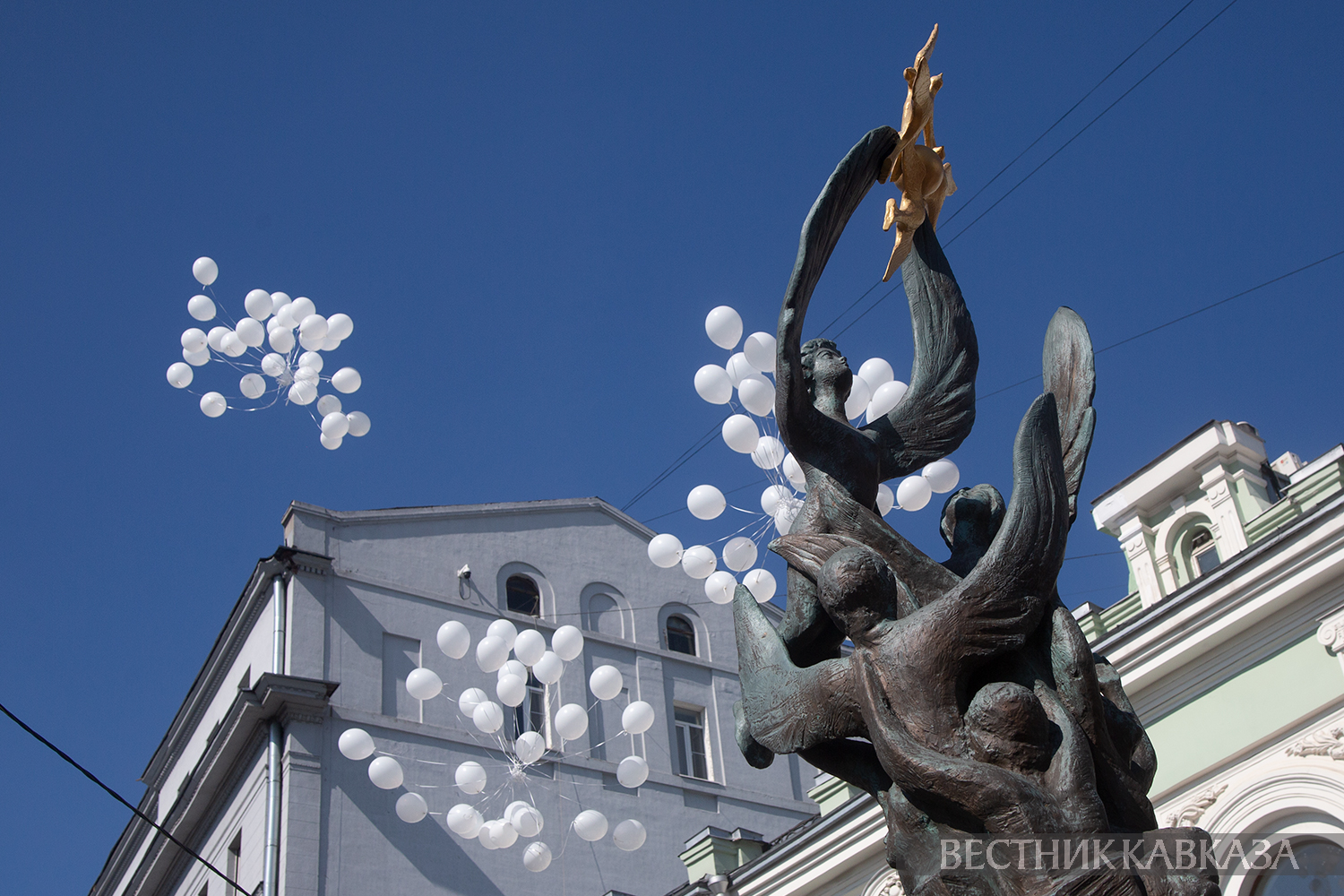 В память жертв бесланской трагедии была объявлена минута молчания, после чего в небо запустили 334 белых шара. Именно столько невинных душ погибли в те страшные дни.