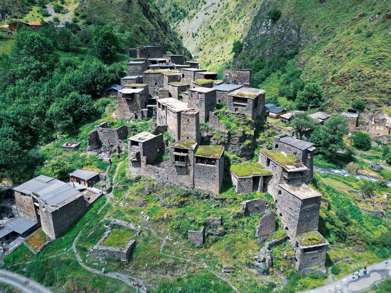 - Муцо. Муцо находится всего в 3 км от Хонисчалы. Около 30 домов-башен села соединены между собой, когда-то Муцо считался самым прочным укреплением на северо-восточной границе Грузии. Чтобы добраться до села, нужно припарковаться на обочине дороги перед кафе и подняться по тропе примерно на один километр. По пути встретятся склепы и святилища. Село восстанавливали с 2014 года. Стоит выделить как минимум 2 часа на поход вверх и обратно.