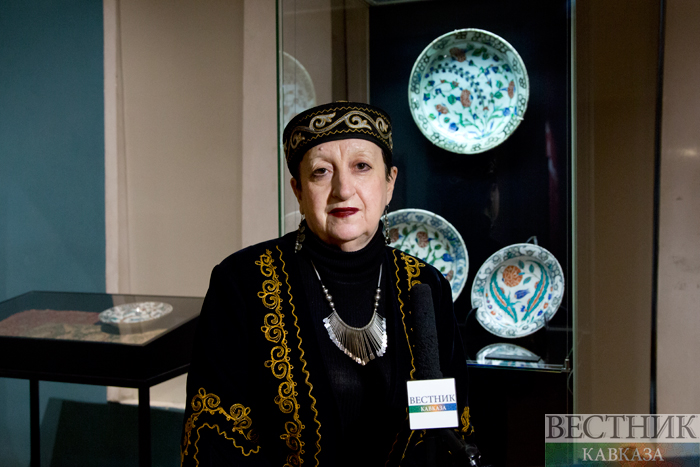 -Экспозиция делится на два зала: первый зал - это XVI-XVII века, период расцвета Османского государства, османского искусства, когда был создан знаменитый османский цветочный стиль, который потом и в ткани, и в керамике, и в разных видах искусства проявился. Второй зал посвящен позднему османскому периоду, в основном это вещи XIX века. Мы постарались показать, насколько это было возможно на основании коллекции, какие произошли перемены: и европейское влияние, и народное искусство, и как это все отразилось в керамическом производстве. Здесь и в первом зале и во втором представлены ткани и ковры, просто потому что это вещи, которые развивались в той же культурной среде. Например, цветочный стиль знаменитый в той же мере проявился в тканях, как и в керамике", - рассказала куратор выставки, кандидат исторических наук Мария Кулланда.